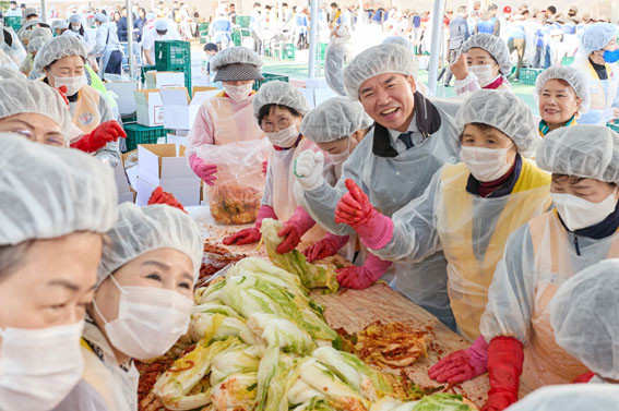 ÇÑÆí À̳¯ Çà»ç¿¡´Â 47°³ ±â¾÷¡¤±â°ü¡¤´Üü¿¡¼ 1õ¿© ¸íÀÇ ºÀ»çÀÚ°¡ Âü¿©ÇØ ±èÀå±èÄ¡ ´ã±×±â, Æ÷ÀåÇϱ⠵îÀ» Â÷·Ê·Î ÁøÇàÇÏ¸ç ¿ÂÁ¤ ³ª´®À» À§ÇÑ ºÀ»çȰµ¿À» ÆîÃÆ°í, º»°ÝÀûÀÎ ±èÀåÀÌ ½ÃÀÛµÇÀÚ ¾Æ»ê½Ã È«º¸°¡¼ö ¹Ú¹ÌÇö¡¤ÀÓµ¿ºÐ¡¤ÀÌ¿¬ÈÀÇ Àç´É±âºÎ °ø¿¬ÀÌ ºÀ»çÀÚµéÀÇ ÈïÀ» µ¸¿ì¸ç Çà»ç ºÐÀ§±â¸¦ °íÁ¶½ÃÄ×´Ù.