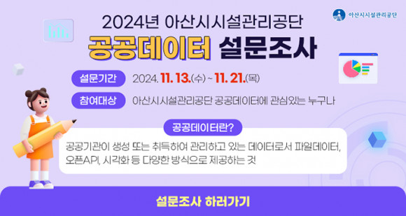 ¾Æ»ê½Ã½Ã¼³°ü¸®°ø´Ü(ÀÌ»çÀå ±èÈ¿¼·, ÀÌÇÏ °ø´Ü)ÀÌ ½Ã¹Î Áß½ÉÀÇ °ø°øµ¥ÀÌÅÍ °³¹æÀ» À§ÇÑ ¼³¹®Á¶»ç¸¦ ÁøÇàÇÑ´Ù.