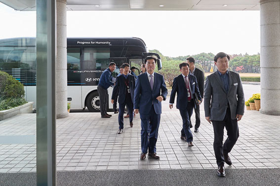 °£´ãȸ¿¡¼ Á¶ ±ÇÇÑ´ëÇàÀº ¡°Çö´ëÀÚµ¿Â÷´Â Àü ¼¼°è ģȯ°æ ¸ðºô¸®Æ¼¸¦ ¼±µµÇÏ´Â ´ëÇ¥ ±â¾÷À¸·Î¼, ±× Á߽ɿ¡ ¾Æ»ê°øÀåÀÌ Å« ¿ªÇÒÀ» ´ã´çÇØ ¾Æ»ê½Ã À§»óÀ» µå³ôÀ̰í ÀÖ´Ù¡±¸ç, ¡°Áö¿ª ÁÖ¹Î, ´Üü, ±â°üµé°úÀÇ Àû±ØÀûÀÎ ¼ÒÅë°ú Çù·ÂÀ» ÅëÇØ Áö¿ª»çȸ¿Í ÇÔ²² ¹ßÀüÇÒ ¼ö ÀÖµµ·Ï Å« ¿ªÇÒÀ» ÇØÁֱ⸦ ±â´ëÇÑ´Ù¡±°í °¨»çÀÇ ¸»À» ÀüÇß´Ù.