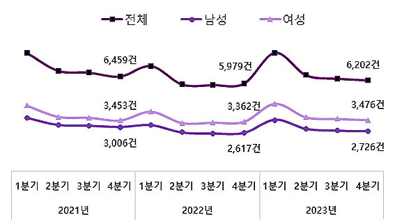 ¶ÇÇÑ, Æò±Õ ÃÊÈ¥ ¿¬·ÉÀº ¿©¼º 31.1¼¼, ³²¼º 34.0¼¼·Î ¸Å³â ³ô¾ÆÁö°í ÀÖÀ¸¸ç, 2023³â 4ºÐ±â ¿©¼ºÀÇ ±¸Á÷ ½ÅûÀº 3,476°ÇÀ¸·Î Àü³â °°Àº ºÐ±â ´ëºñ 114°Ç Áõ°¡ÇØ ¸Å³â ¿©¼ºÀÇ ±¸Á÷ ½ÅûÀÌ ³ô¾ÆÁö´Â °ÍÀ» º¼ ¼ö ÀÖ´Ù.