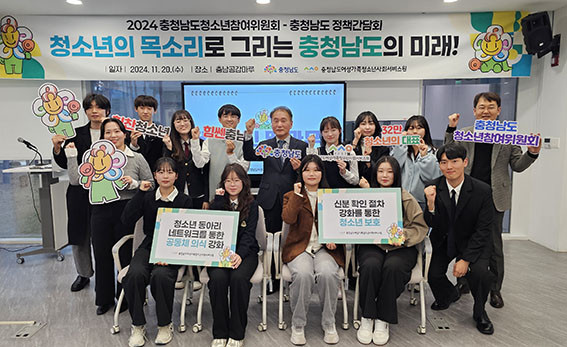 À̳¯ °£´ãȸ¿¡¼± 17±â Ãæ³²Ã»¼Ò³âÂü¿©À§¿øÈ¸°¡ µµ³» û¼Ò³âÀÇ ¸ñ¼Ò¸®¸¦ ´ã¾Æ ¹ß±¼ÇÑ ¡âû¼Ò³â °øµ¿Ã¼ ÀÇ½Ä ÇÔ¾çÀ» À§ÇÑ Ã»¼Ò³â µ¿¾Æ¸® °ü°è¸Á ±¸Ãà ¡âû¼Ò³â º¸È£¸¦ À§ÇÑ ½ÅºÐ È®ÀÎ ÀýÂ÷ Á¦µµ °È µî Á¤Ã¥ 2°ÇÀ» µµ¿¡ Àü´ÞÇß´Ù.