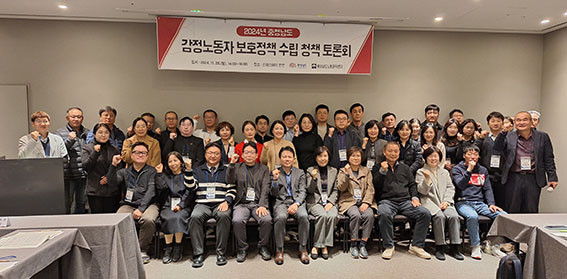 À̹ø Åä·Ðȸ¿¡¼± ÀÌÁ¤ÈÆ ³ëµ¿¡¤ÀÏÅÍ¿¬±¸¼Ò °¨µ¿ ´ëÇ¥ÀÇ ¡®Àü±¹ °¨Á¤³ëµ¿ º¸È£ ÇöȲ°ú Ÿ ½Ãµµ »ç·Ê ºÐ¼®¡¯ ¹ßÁ¦¸¦ ÅëÇØ °¨Á¤³ëµ¿ÀÇ ÇöÁÖ¼Ò¿Í Àü±¹ ÁöÀÚü °¨Á¤³ëµ¿ Á¤Ã¥, Ãæ³² °¨Á¤³ëµ¿ º¸È£ Á¤Ã¥ÀÇ Àǹ̡¤¿ªÇÒÀ» »ìÆìºÃ´Ù.
