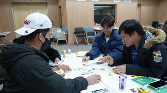 2Â÷½Ã(11¿ù 23ÀÏ)¿¡´Â Çѱ¹ÀÎÀÇ ÀÏ»ó ¼Ó À¯±³Àû ¿¹ÀýÀ» ÁÖÁ¦·Î °ø¼ö Àλç¿Í ÀýÇÏ´Â ¹æ¹ýÀ» ¹è¿ì°í ½Ç½ÀÇÏ¿´°í, Çѱ¹ÀÇ ½Ä±âÀÎ ¼ù°¡¶ô°ú Á£°¡¶ôÀÇ »ç¿ë¹ýÀ» ¹è¿ì°í Çùµ¿ °ÔÀÓÀ» ÁøÇàÇÏ¿´´Ù. ÀÌÈÄ ´Ùµµ üÇèÀ» ÁøÇàÇϸç Çѱ¹ À¯±³¹®È¸¦ ±íÀÌ Ã¼ÇèÇÏ´Â ½Ã°£À» °¡Á³´Ù.