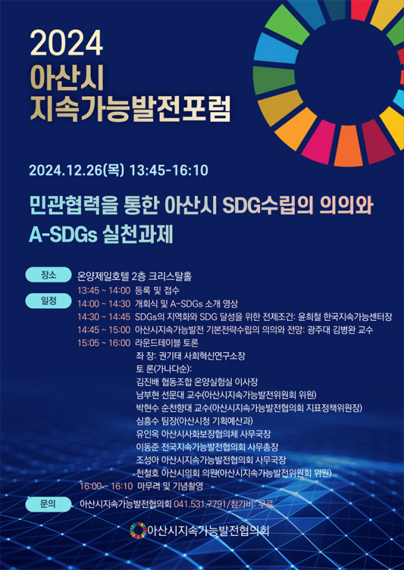 ¾Æ»ê½ÃÁö¼Ó°¡´É¹ßÀüÇùÀÇȸ´Â ¿À´Â 12¿ù 26ÀÏ(¸ñ) ¿ÀÈÄ 2½Ã, ¿Â¾çÁ¦ÀÏÈ£ÅÚ Å©¸®½ºÅ»È¦¿¡¼ 2024 ¾Æ»ê½ÃÁö¼Ó°¡´É¹ßÀüÆ÷·³À» °³ÃÖÇÑ´Ù.