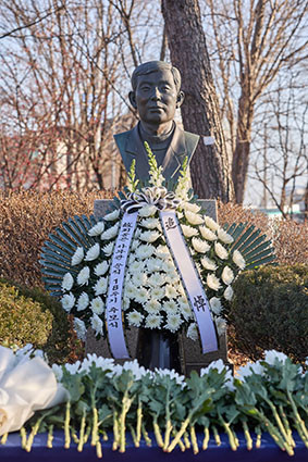 ¾Æ»ê½Ã´Â °íÀÎÀÇ ÅõöÇÑ »ç¸í°¨°ú Çå½ÅÀ» ±â¸®±â À§ÇØ ½Ãû ¾Õ ±¤Àå¿¡ Èä»óÀ» ¼¼¿ì°í ¸Å³â Ã߸ð½ÄÀ» ¿¾ú´Ù. Ã߸ð½ÄÀº 5ÁÖ±â ÀÌÈÄ ÁߴܵǾúÀ¸³ª, 2022³â µ¿·á °øÁ÷ÀÚµéÀÇ Á¦¾ÈÀ¸·Î 11³â ¸¸¿¡ Àç°³µÆ´Ù. ÀÌÈÄ °í ÃÖÁ¾°ï »ç¹«°ü Ã߸ð½ÄÀº °øÁ÷»çȸÀÇ Çå½Å°ú Èñ»ýÀ» ±â¸®´Â ¹®È·Î ÀÚ¸® Àâ°í ÀÖ´Ù.