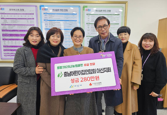 | | ¡è¡è ¡ãÃæ³²¾î¸°ÀÌÁý¿¬ÇÕȸ ¾Æ»êÁöȸ°¡ Èñ¸Á2025³ª´®Ä·ÆäÀÎ ¼º±Ý Àü´Þ½Ä ÈÄ ÀÌÇö°æ ¹®Èº¹Áö±¹Àå°ú ±â³äÃÔ¿µÀ» Çϰí ÀÖ´Ù. <»çÁøÁ¦°ø=¾Æ»ê½Ã> | ¨Ï (ÁÖ)¿Â¾ç½Å¹®»ç | | Ãæ³²¾î¸°ÀÌÁý¿¬ÇÕȸ ¾Æ»êÁöȸ(ÁöȸÀå ¹Ú¼ö¿ë)°¡ Áö³ 12¿ù 24ÀÏ ¾Æ»ê½Ã¿¡ ¡¸Èñ¸Á2025³ª´®Ä·ÆäÀΡ¹ ¼º±Ý 280¸¸ ¿øÀ» Àü´ÞÇß´Ù.