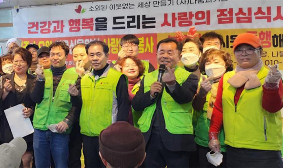 ±èÁ¾±â »óÀÓ´ëÇ¥´Â ¡°µû¶æÇÏ°Ô »ç¶ûÀÌ ´ã±ä ¹äÀ» ÇÔ²² ¸Ô¾îº¸´Â °ÍÀÌ ¼Ò¿øÀÎ ºÐµéµµ °è½Ã°í, Á¡½ÉÀ» ¸ø ¸Ô´Â ¾î¸£½Åµé, °¡³ ¶§¹®¿¡ Èû°ã°Ô »ì¾Æ°¡´Â ºÐµéÀÇ À̾߱⸦ ±×µ¿¾È ¸¹ÀÌ µé¾î¿Ô´Ù. ÀÌ·¸°Ô Áñ°Å¿öÇÏ´Â ¼ºÅºÀý¿¡ ¾î·Á¿î ÀÌ¿ô°ú ÇÔ²² »ç¶ûÀ» ³ª´©±â¸¦ ¹Ù¶õ´Ù.¡±¸ç ¡°¼ºÅºÀýÀ» Áñ°Ì°í ÇູÇÏ°Ô ÁöŰ´Â ÁÁÀº ¹æ¹ý Áß¿¡´Â ³·Àº ÀÚ¸®¿¡ ÀÖ´Â ¾î·Á¿î ÀÌ¿ô¿¡°Ô µû¶æÇÑ »ç¶ûÀÇ ¼ÕÀ¸·Î Àâ°í µ¿ÇàÇÏ´Â °Í¡±À̶ó°í Çß´Ù.