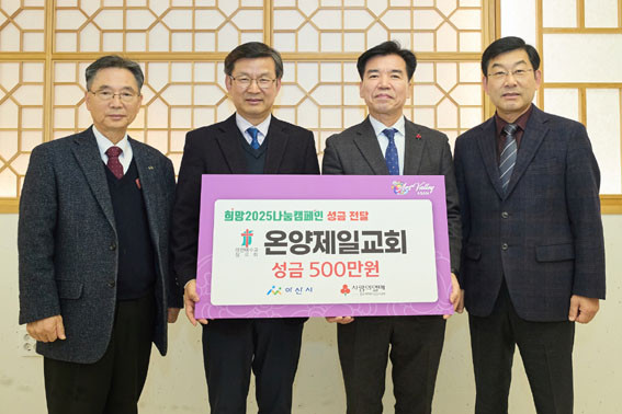 | | ¡è¡è ¡ã¿Â¾çÁ¦Àϱ³È¸°¡ Èñ¸Á2025³ª´®Ä·ÆäÀÎ ¼º±ÝÀ» Àü´Þ ÈÄ ±â³äÃÔ¿µÀ» Çϰí ÀÖ´Ù. <»çÁøÁ¦°ø=¾Æ»ê½Ã> | ¨Ï (ÁÖ)¿Â¾ç½Å¹®»ç | | ¿Â¾çÁ¦Àϱ³È¸(À§ÀÓ¸ñ»ç ±èÀÇÁß)°¡ Áö³ 12¿ù 26ÀÏ ¾Æ»ê½Ã¿¡ ¡®Èñ¸Á2025³ª´®Ä·ÆäÀΡ¯ »ç¶ûÀÇ ¼º±Ý 500¸¸ ¿øÀ» ±âºÎÇß´Ù.