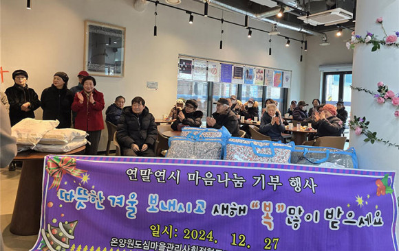 ¿Â¾ç¿øµµ½É ¸¶À»°ü¸®»çȸÀûÇùµ¿Á¶ÇÕ(ÀåÀ챂 ÀÌ»çÀå)°ú ´Ùºû¿©¼º°øµ¿Ã¼(³²È¿¼÷ ´ëÇ¥)´Â 12¿ù 27ÀÏ ¼Ò¿ÜµÈ µ¶°Å³ëÀεéÀÌ µû¶æÇÑ °Ü¿ïÀ» º¸³¾ ¼ö ÀÖ°Ô »ç¶ûÀÇ ¿Â±â¸¦ Àü´ÞÇß´Ù.