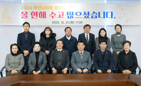 ¾Æ»ê½ÃÀÇȸ(ÀÇÀå È«¼ºÇ¥)´Â 12¿ù 31ÀÏ ¿ÀÀü 11½Ã ÀÇȸµ¿ 3Ãþ ´Ù¸ñÀû ȸÀǽǿ¡¼ ½ÃÀÇ¿ø°ú »ç¹«±¹ Á÷¿øµéÀÌ Âü¼®ÇÑ °¡¿îµ¥ 2024³âµµ Á¾¹«½ÄÀ» °³ÃÖÇß´Ù.