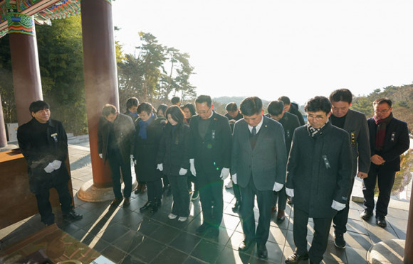 À̳¯ È«¼ºÇ¥ ÀÇÀåÀ» ºñ·ÔÇÑ ¾Æ»ê½ÃÀÇ¿øµé°ú ÀÇȸ»ç¹«±¹ Á÷¿øµéÀº ÇöÃæ»ç ºÐÇâ¼Ò¸¦ ã¾Æ Âü¹èÇϸç Ãæ¹«°ø À̼ø½Å À屺ÀÇ ¾Ö±¹Á¤½Å°ú Çå½ÅÀ» µÇ»õ±â°í »õ·Î¿î °¢¿À¸¦ ´ÙÁ³´Ù.