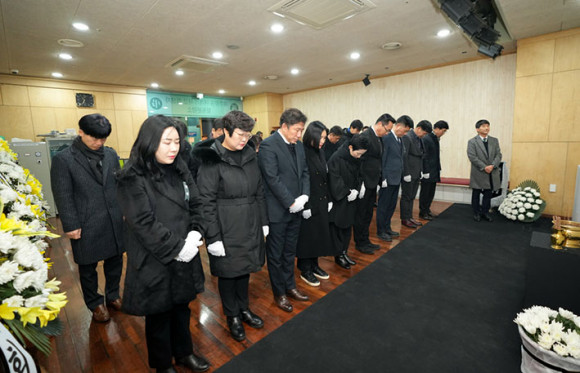 À̾î, ¾Æ»ê½ÃÀÇȸ´Â ¿Â¾ç¿Âõ¿ª ÇϺΰø°£¿¡ ¸¶·ÃµÈ Á¦ÁÖÇ×°ø ¿©°´±â »ç°í Èñ»ýÀÚ ÇÕµ¿ºÐÇâ¼Ò¸¦ ã¾Æ Á¶¹®Çß´Ù. È«¼ºÇ¥ ÀÇÀå°ú ¸ÍÀǼ® ºÎÀÇÀåÀ» ºñ·ÔÇÑ ÀÇ¿øµé°ú Á÷¿øµéÀº ÇåÈ ÈÄ ¹¬³äÀ¸·Î Èñ»ýÀÚ¸¦ Ã߸ðÇß´Ù.