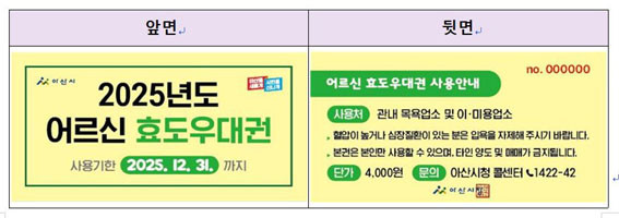 ÇÑÆí ¾Æ»ê½Ã´Â 65¼¼ ÀÌ»ó ¾î¸£½ÅµéÀ» À§ÇØ 2011³â ¡¸¾Æ»ê½Ã ³ëÀÎ ¸ñ¿åºñ ¹× ÀÌ¡¤¹Ì¿ëºñ Áö¿ø Á¶·Ê¡¹¸¦ Á¦Á¤ÇØ °ü³» ¸ñ¿å ¹× ÀÌ¡¤¹Ì¿ë¾÷¼Ò¿¡¼ »ç¿ë °¡´ÉÇÑ ¡®¾î¸£½Å È¿µµ¿ì´ë±Ç¡¯À» Áö¿øÇϰí ÀÖ´Ù.