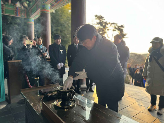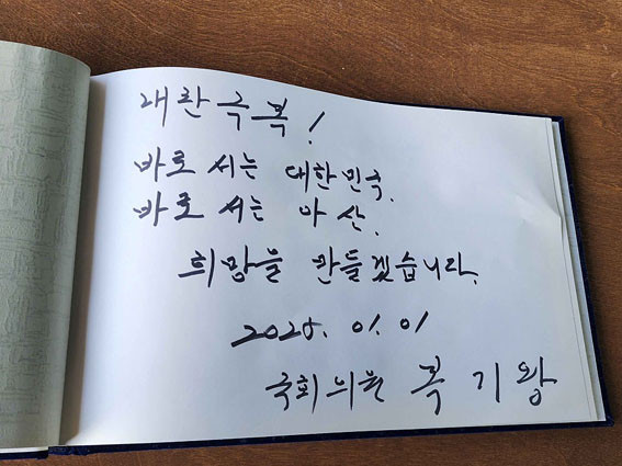 º¹ ÀÇ¿øÀº Áö³ 1¿ù 1ÀÏ ¿ÀÀü 9½Ã ÇöÃæ»ç¿¡ ºÀ¾ÈµÈ Ãæ¹«°øÀÇ ¿µÁ¤ ¾Õ¿¡ Âü¹èÇÑ, µÚ ¹æ¸í·Ï¿¡ ¡®¹Ù·Î ¼´Â ´ëÇѹα¹, ¹Ù·Î ¼´Â ¾Æ»ê. Èñ¸ÁÀ» ¸¸µé°Ú½À´Ï´Ù¡¯¶ó°í ³²°å´Ù.