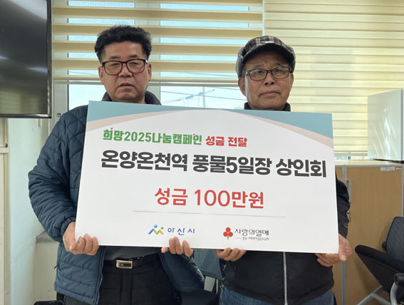 | | ¡è¡è ¡ã¡®Èñ¸Á2025³ª´®Ä·ÆäÀΡ¯¿¡ ¼º±Ý Àü´Þ <»çÁøÁ¦°ø=¾Æ»ê½Ã> | ¨Ï (ÁÖ)¿Â¾ç½Å¹®»ç | | ¾Æ»ê½Ã ¿Â¾ç¿Âõ¿ª dz¹°5ÀÏÀå »óÀÎȸ(ȸÀå ¹Úº´»ó)°¡ »õÇØ¸¦ ¸Â¾Æ Áö³ 1¿ù 2ÀÏ ¡®2025³ª´®Ä·ÆäÀΡ¯ ¼º±Ý 100¸¸ ¿øÀ» ¾Æ»ê½Ã¿¡ Àü´ÞÇß´Ù.