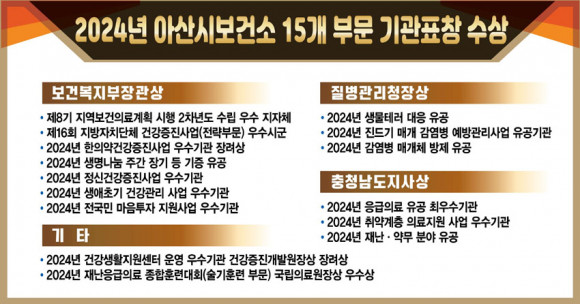 ¾Æ»ê½Ãº¸°Ç¼Ò, 2024³â 15°³ ºÐ¾ß ¿ì¼ö±â°ü»ó ¼ö»ó