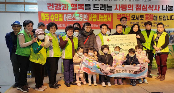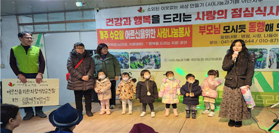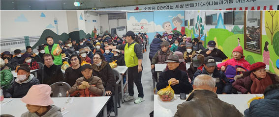 ÀÌ¿¡ Áö³ 1¿ù 15ÀÏ °æ·Î ¹«·á±Þ½Ä¼Ò¿¡¼ À»»ç³â »õÇØ¸ÂÀÌ ¾î¸£½ÅµéÀ» À§ÇÑ ¼±¹°·Î ¾î¸°ÀÌ Àç·ÕÀÜÄ¡¿Í µû¶æÇÑ »ç¶ûÀÇ Á¡½É½Ä»ç ´ëÁ¢, ¼±¹° ³ª´®À¸·Î Ãß¿öÁø ³¯¾¾ Å¿¿¡ ¿Â ¸öÀ» ¿òÃ÷¸®¼Ì´ø ¾î¸£½Åµé¿¡°Ô Àá½Ã³ª¸¶ µû¶æÇÔÀ» ´ã¾Æµå·È´Ù.