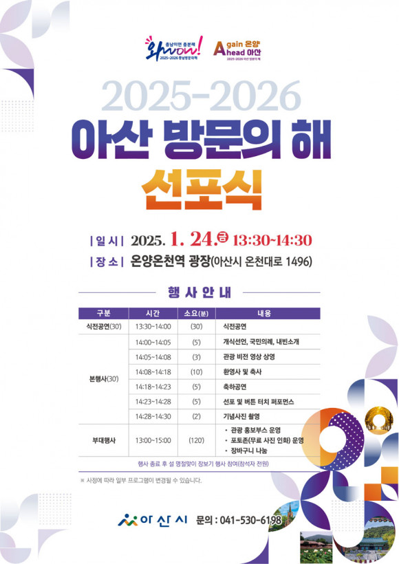 ¾Æ»ê½Ã°¡ ¿À´Â 1¿ù 24ÀÏ ¿Â¾ç¿Âõ¿ª ±¤Àå¿¡¼ ¡®2025~2026 ¾Æ»ê ¹æ¹®ÀÇ ÇØ ¼±Æ÷½Ä¡¯À» ÅëÇØ ¾Æ»ê ¹æ¹®ÀÇ ÇØ¸¦ º»°ÝÀûÀ¸·Î °³¸·ÇÑ´Ù.