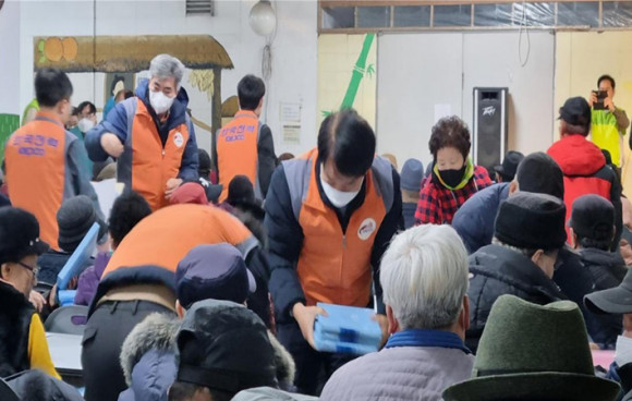 (»ç)³ª´®°ú±â»Ý ¾Æ»êÁöºÎ(´ëÇ¥ ±è¿øÁø ¸ñ»ç)´Â Áö¿ª¼Ò¿Ü°èÃþ °æ·Î ¹«·á±Þ½Ä¼Ò¿¡¼ Áö³ 22ÀÏ Çѱ¹Àü·Â°ø»ç ¾Æ»êÁö»ç(Áö»çÀå °Á¾½Ä)¿Í ÇÔ²² ¼³ ¸íÀýÀ» ¸Â¾Æ ¼Ò¿Ü°èÃþ ¾î¸£½Åµé¿¡°Ô Á¤¼º²¯ ¸¶·ÃÇÑ ¼±¹°À» ³ª´©¾î µå·È´Ù,