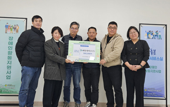 ¹è¹æ·¹¹ÌÄÜ(ÁÖ) ÀÓÁ÷¿ø 40¸íÀÌ ÁöÀûÀå¾Ö¸¦ °¡Áø û¼Ò³âÀÇ Çо÷À» Áö¿øÇϱâ À§ÇØ Ãæ³²¾Æ»êÁö¿ªÀÚȰ¼¾ÅÍ µ¹º½»çȸ¼ºñ½º½Ç¿¡ 50¸¸¿ø ÈÄ¿ø±ÝÀ» Àü´ÞÇß´Ù.