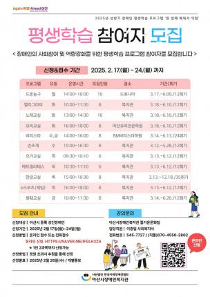 2025³âµµ »ó¹Ý±â Àå¾ÖÀÎ Æò»ýÇнÀ ÇÁ·Î±×·¥ Âü¿©ÀÚ ¸ðÁý