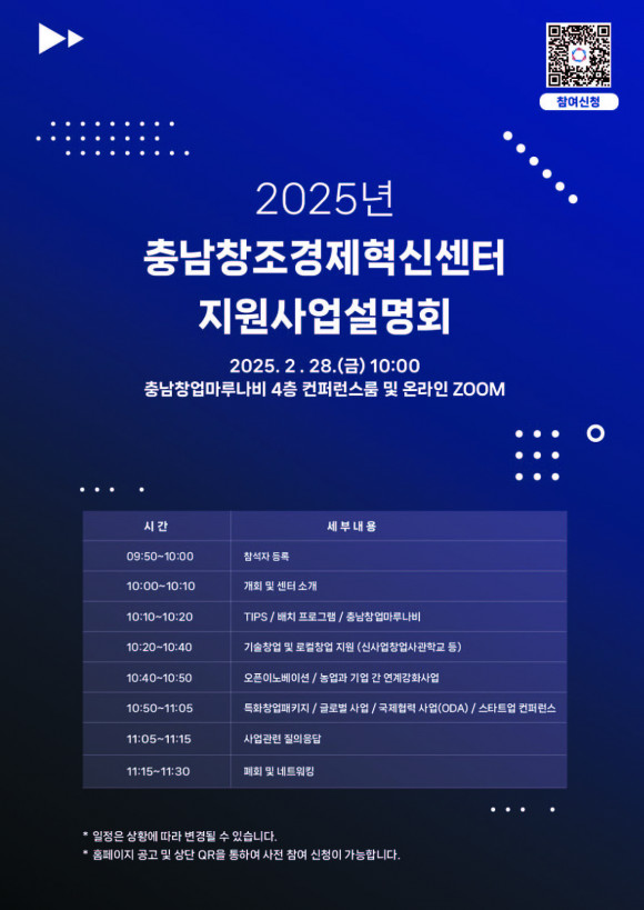 Ãæ³²Ã¢Á¶°æÁ¦Çõ½Å¼¾ÅÍ, 2025³â Áö¿ø»ç¾÷ ¼³¸íȸ °³ÃÖ