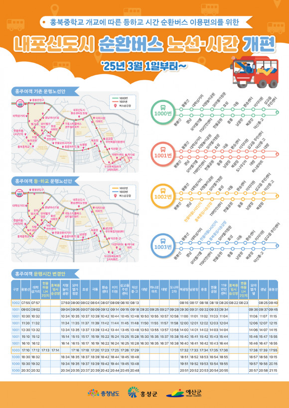 °³Æí¿¡ µû¶ó µîÇϱ³ ½Ã°£ °¢°¢ 1ȸ¾¿(ÃÑ 4ȸ) ¼øÈ¯¹ö½º 2´ë(È«ÁÖ¿©°´ 1, ¿¹»ê±³Åë 1)°¡ È«ºÏÁß ÀαٱîÁö ³ë¼±À» ¹Ù²ã ¿îÇàÇÒ ¿¹Á¤ÀÌ´Ù.