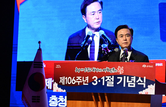 ±×·¯¸é¼ ¡°Ãæ³²Àº ÀÌ¹Ì ³ó¾÷, ź¼ÒÁ߸³, º£À̹븮 µî ´ëÇѹα¹ÀÇ Ç¥ÁØÀ» ¸¸µé°í ÀÖ´Ù¡±¸ç ¡°»õ·Î¿î ½Ã´ëÀÇ ¹®Åο¡¼ ÀÌÁ¦ °³Çå°ú ÅëÇÕÀ¸·Î ±¹°¡ ´ëÀüȯÀÇ ±æÀ» ¿¾î ³ª¾Æ°¡°í, Ãæ³²ÀÌ ´ëÇѹα¹Àǹ̷¡¸¦ »õ·Î¿î Èñ¸ÁÀ¸·Î ¿¾î ³ª¾Æ°¡ÀÚ¡±°í µ¡ºÙ¿´´Ù.