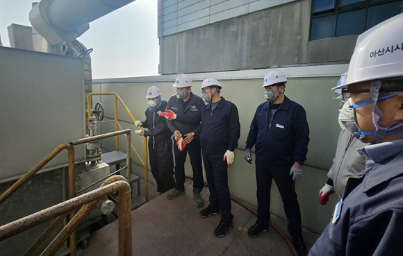 ¶ÇÇÑ ¾Æ»ê½Ã½Ã¼³°ü¸®°ø´Ü ±èÈ¿¼· ÀÌ»çÀåÀº »ýȰÀÚ¿øÃ³¸®Àå »ó¹Ý±â Á¤±âº¸¼ö¸¦ ¸Â¾Æ Á÷Á¢ ÇöÀåÀ» ¹æ¹®ÇØ ÀÛ¾÷ ȯ°æ ¹× ¾ÈÀü°ü¸® ½ÇŸ¦ Á¡°ËÇϰí, Á¤±âº¸¼ö¿¡ ¸ÅÁøÇϰí ÀÖ´Â ÇöÀå ±Ù·ÎÀÚµéÀÇ ¾Ö·Î»çÇ×À» ûÃëÇÏ¸ç °Ý·ÁÇß´Ù.