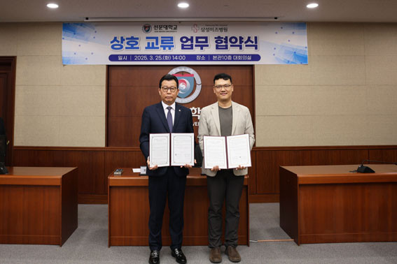 | | ¡è¡è ¡ãÇù¾à ´ëÇ¥ÀÚ°¡ ±â³ä ÃÔ¿µÀ» Çϰí ÀÖ´Ù. (ÁÂ-¼±¹®´ë ¹®¼ºÁ¦ ÃÑÀå, ¿ì-»ï¼º¹ÌÁ¿ø ±èÁ¤¸¸ º´¿øÀå) <»çÁøÁ¦°ø=¼±¹®´ëÇб³> | ¨Ï (ÁÖ)¿Â¾ç½Å¹®»ç | | ¼±¹®´ëÇб³(ÃÑÀå ¹®¼ºÁ¦)´Â 3¿ù 25ÀÏ ¼±¹®´ë¿¡¼ »ï¼º¹ÌÁ¿ø(º´¿øÀå ±èÁ¤¸¸)°ú ¡®»óÈ£ ±³·ù¸¦ À§ÇÑ ¾÷¹«Çù¾à(MOU)¡¯À» ü°áÇß´Ù°í ¹àÇû´Ù.