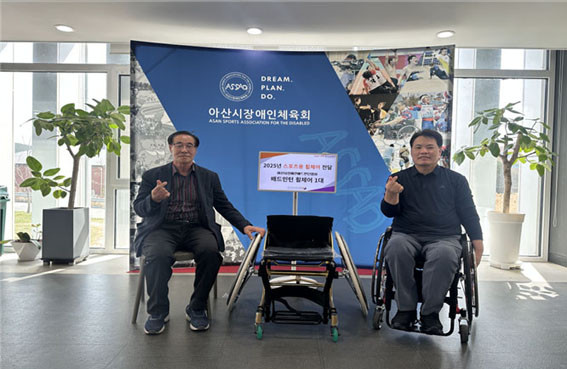 ¾Æ»ê½ÃÀå¾ÖÀÎüÀ°È¸´Â ´ëÇÑÀå¾ÖÀÎüÀ°È¸ °ø¸ð»ç¾÷ÀÎ ¡®½ºÆ÷Ã÷¿ë ÈÙü¾î º¸±Þ»ç¾÷¡¯ °ø¸ð¸¦ ÅëÇØ ¹èµå¹ÎÅÏ ÈÙü¾î¸¦ ¹Þ¾Æ, ¾Æ»ê½ÃÀå¾ÖÀιèµå¹ÎÅÏÇùȸ¿¡ Àü´ÞÇß´Ù.