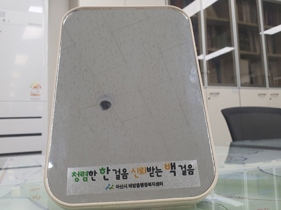 û·Å °Å¿ïÀº °¡·Î 14cm ¼¼·Î 21cm Å©±âÀÇ Å¹ÀÚ¿ë °Å¿ï·Î ¾Õ¸é¿¡ ¡®Ã»·ÅÇÑ ÇÑ °ÉÀ½ ½Å·Ú¹Þ´Â ¹é °ÉÀ½¡¯À̶ó´Â ¹®±¸¸¦ ÅëÇØ, û·ÅÇÑ ÇϷ縦 ½ÃÀÛÇÏ¸ç °øÁ÷ÀڷμÀÇ Ã¥ÀÓ°ú ÀÚ¹ßÀûÀΠû·Å ÀǽÄÀ» °Á¶ÇÑ´Ù.