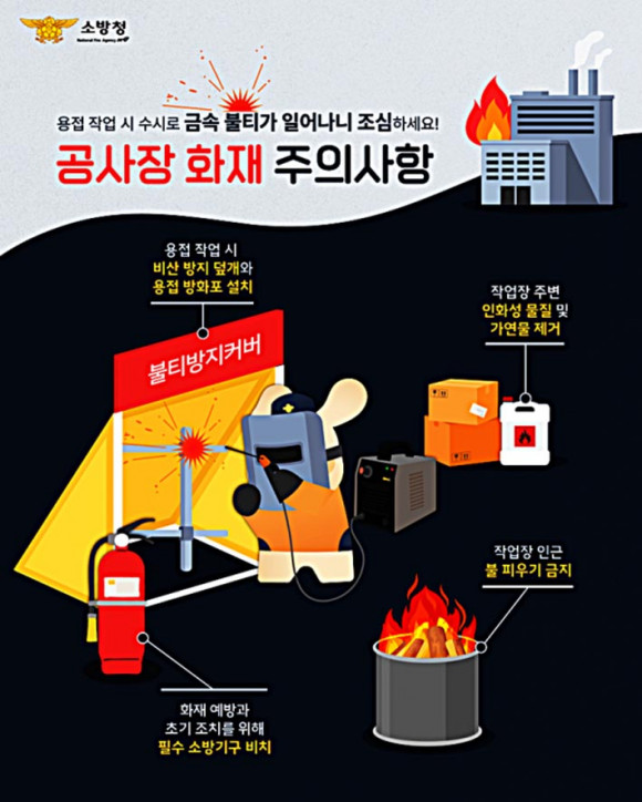 °ø»çÀå ÈÀç ¿¹¹æÀ» À§ÇÑ ¾ÈÀü¼öÄ¢À¸·Î ¡â¿ëÁ¢ ½Ã ºñ»ê ¹æÁö µ¤°³¿Í ¿ëÁ¢ ¹æÈÆ÷ ¼³Ä¡ ¡âÀÛ¾÷Àå ÁÖº¯ ÀÎȼº ¹°Áú ¹× °¡¿¬¹° Á¦°Å ¡âÈÀç ¿¹¹æ°ú Ãʱâ Á¶Ä¡¸¦ À§ÇÑ Çʼö ¼Ò¹æ±â±¸ ºñÄ¡ ¡âÀÛ¾÷Àå Àα٠ºÒ ÇÇ¿ì±â ±ÝÁö µîÀÌ ÀÖ´Ù.