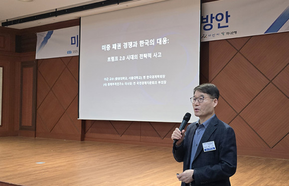 À̳¯ °¿¬Àº ¼¿ï´ëÇб³ À̱٠¼®Á±³¼ö°¡ ¸Ã¾Æ ¡®¹ÌÁß ÆÐ±Ç Àü¸Á¿¡ µû¸¥ ´ëÀÀ¹æ¾È¡¯À» ÁÖÁ¦·Î ÁøÇàµÆ´Ù. ÀÌ ±³¼ö´Â ±Û·Î¹ú ÆÐ±Ç °æÀïÀÌ ½ÉȵǴ Çö ½ÃÁ¡¿¡¼ Çѱ¹ÀÌ ÃëÇØ¾ß ÇÒ Àü·«Àû ´ëÀÀ¿¡ ´ëÇØ Æø³ÐÀº ½Ã°¢À» Á¦½ÃÇϸç ûÁßÀÇ ³ôÀº °ü½ÉÀ» À̲ø¾î ³Â´Ù.