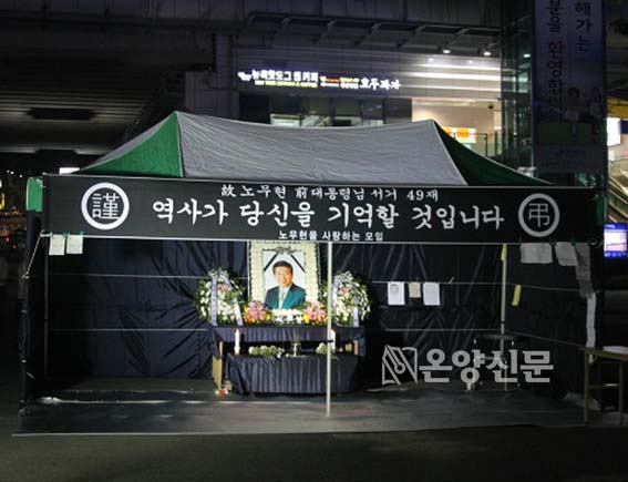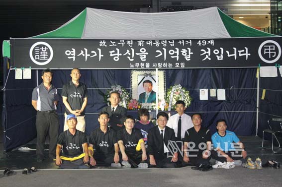 °í(ͺ) ³ë¹«Çö Àü ´ëÅë·ÉÀÇ 49Àç°¡ Áö³ 7¿ù 10ÀÏ ¿ÀÈÄ 6½ÃºÎÅÍ ¿Â¾ç¿Âõ¿ª ¾Õ ½Ã¹ÎºÐÇâ¼Ò¿¡¼ ½Ç½ÃµÆ´Ù. ¾Æ»ê½ÃÃ߸ðÀ§¿øÈ¸(À§¿øÀå º¹±â¿Õ)´Â À̳¯ ¿ÀÈÄ 8½ÃºÎÅÍ Ãßµµ»ç, Çå½Ã ³¶µ¶, ½Ã¹Î´ÜüÀÇ Ãßµµ¹® ³¶µ¶ ±×¸®°í °íÀÎÀÇ ¿µ»ó¹° »ó¿µ ¹× Ã߸ð¹ß¾ð ¼øÀ¸·Î Çà»ç¸¦ ÁøÇàÇß´Ù. | | | ¡ã ¿Â¾ç¿Âõ¿ª ¾Õ¿¡ ¸¶·ÃµÈ ºÐÇâ¼Ò ¸ð½À | À̳¯ Ã߸ðÇà»ç´Â ¾Æ»ê½Ã¹Î¸ðÀÓ ±èÁöÈÆ »ç¹«±¹ÀåÀÇ »çȸ·Î ÁøÇàµÇ´Â °¡¿îµ¥ ¾Æ»ê½Ã ¿Ü±¹Àγ뵿ÀÚ¼¾ÅÍ ¿ì»ï·Ä ¼ÒÀåÀÇ Ãßµµ»ç¿¡ ÀÌ¾î ¾Æ»ê°³Çõ½Ã¹Î¿¬´ë È«ÁÖ¿ª ´ëÇ¥ÀÇ Çå½Ã ³¶µ¶À¸·Î À̾îÁ³´Ù. ¾Æ»ê½Ã¹Î 300¿©¸íÀÌ ºÐÇâ¼Ò¿¡ ÇåÈÇϸç ÁøÇàµÈ À̳¯ Çà»ç´Â ¼Û¾Ç±³È¸ ÀÌÁ¾¸í ¸ñ»çÀÇ Ãßµµ¹® ³¶µ¶¿¡ À̸£·¯ ºÐÀ§±â°¡ ÃÖ°íÁ¶¿¡ ´ÞÇß´Ù. | | | ¡ã Ãßµµ¹®À» ³¶µ¶Çϰí ÀÖ´Â ÀÌÁ¾¸í ¸ñ»ç | ÀÌÁ¾¸í ¸ñ»ç´Â Ãßµµ¹®¿¡¼ ¸ñÀÌ ¸ÞÀÎ ¸ñ¼Ò¸®·Î ¡°¾ðÁ¨°¡ ´õºÒ¾î »ç´Â ²Þ°°Àº ¼¼»ó, Çϴóª¶ó ÀÌ ¶¥¿¡µµ ÀÌ·ç¾îÁö´Â ³¯ ³ª´Â ´ç½Å ¼ÕÀ» Àâ°í ´Ù½Ã ¸»ÇÒ °Ì´Ï´Ù. ´ç½Å°ú ÇÔ²² ²Þ²Ù¾ú´ø ¼ø°£ÀÌ Á¤¸» ÇູÇß¾ú´Ù¡±¸ç °íÀÎÀÇ ¸íº¹À» ºô¾ú´Ù. Ã߸ð¹ß¾ð¿¡¼ Ǫ¸¥µéSFC ¹Ú¼º¼ø º»ºÎÀåÀº ¡°ÀÌ ¹ãÀÌ Áö³ª¸é ³ë Àü ´ëÅë·ÉÀ» Ã߸ðÇϱâ À§ÇØ Ã£À» Àå¼Ò³ª Çà»ç´Â ¾ø´Ù´Â »ý°¢¿¡ ÂøÀâÇÏ´Ù. ¿À´Ã±îÁö ½½ÆÛÇÏ°í ³»ÀÏÀº ¿ôÀ¸¸ç ±×ºÐÀ» »ý°¢ ÇÒ ¼ö ÀÖ¾úÀ¸¸é ÁÁ°Ú´Ù¡±°í ¸»Çß´Ù. | | | ¡ã »çȸ¸¦ ¸Ã°í ÀÖ´Â ±èÁöÈÆ ¾Æ»ê½Ã¹Î¸ðÀÓ »ç¹«±¹Àå | À̳¯ Çà»ç´Â ±× ¹Û¿¡ ³ë¹«Çö »ç¶ûÇÏ´Â »ç¶÷ ÀÌÁ¤¼±¾¾ÀÇ Ãßµµ¹® ³¶µ¶, ¹ÎÁֳ뵿´ç Ãæ³²µµ´ç Áö¿µÃ¶ Á¤Ã¥±¹ÀåÀÇ ¼º¸í¼ ³¶µ¶, ¹ÎÁÖ´ç Ãæ³²µµ´ç À±°´ö ³ëÀÎÀ§¿øÀåÀÇ Ã߸ð¹ß¾ð µîÀÇ ¼øÀ¸·Î À̾îÁ³´Ù. ƯÈ÷ ºÀÈ»ê 49Àç ¾ÈÀå½Ä¿¡ ´Ù³à¿Í ¹ã 8½ÃÂë ¿ªÀü ±¤Àå¿¡ µµÂøÇÑ ¾Æ»ê½ÃÃ߸ðÀ§¿øÈ¸ º¹±â¿Õ À§¿øÀåÀº ºÀÇϸ¶À» ºÎ¾ûÀÌ ¹ÙÀ§¿¡¼ ÇÑ´«¿¡ ³»·Á´Ù º¸ÀÌ´Â ÆòÆòÇÑ °÷¿¡ ³×¸ð³ ¹ÙÀ§°¡ ºÀºÐÀ» ´ë½ÅÇÑ ³ë Àü ´ëÅë·ÉÀÇ ¾ÈÀå½Ä Àå¸é°ú °Å±â¿¡ ¸ðÀÎ Á¶¹®°´µéÀÇ ºÐÀ§±â¸¦ ÀüÇÏ¸ç ¡°¿ì¸®ÀÇ °¡½¿ ¼Ó¿¡¼ ³ë¹«ÇöÀ» ºÎȰ½ÃÄÑ¾ß ÇÑ´Ù¡±°í ¿ï¸Ô¿´´Ù. | | | ¡ã ¾Æ»ê½Ã Ã߸ðÀ§¿øÈ¸ º¹±â¿Õ À§¿øÀå | ¶ÇÇÑ ±×´Â¡°¹ÎÁÖÁÖÀÇ ÃÖÈÄÀÇ º¸·ç´Â ±ú¾î ÀÖ´Â ½Ã¹ÎÀÇ Á¶Á÷µÈ ÈûÀÌ´Ù¡±¶ó´Â ³ë Àü ´ëÅë·ÉÀÌ °¡Àå ÁÁ¾ÆÇß´ø ±Û±Í¸¦ ¸»ÇÏ¸ç ¡°´Ù½Ã ºÎȰÇÏ´Â Áö¿ªÁÖÀÇ, ±ÇÀ§ÁÖÀÇ, ÈÄÅðÇÏ´Â ¹ÎÁÖÁÖÀÇ, ´ë¸³ÇÏ´Â ³²ºÏ°ü°è, ¾²·¯Á®°¡´Â ¼¹ÎµéÀÇ »îÀ» ÁöÄѳ»±â À§ÇÑ À¯ÀÏÇÑ ±æÀº ¿ì¸® °¢ÀÚ°¡ ºÎȰÇÏ´Â ³ë¹«ÇöÀ¸·Î ±× ºÐÀÇ ¸ø ÀÌ·é ²ÞÀ» ÀÌ·ç´Â ±æ »ÓÀÌ°í ±×°Í¸¸ÀÌ ÁøÁ¤ÇÑ °íÀο¡ ´ëÇÑ Ã߸𡱶ó°í ÁÖÀåÇß´Ù. ¾Æ»ê½ÃÃ߸ðÀ§¿øÈ¸´Â À̳¯ ¡°Ã߸ð 1Áֳ⿡ ´Ù½Ã ³ë¹«ÇöÀ» ±â¾ïÇսô١±¸¦ ¼¼ ¹ø ¿ÜÄ¡´Â °ÍÀ» ³¡À¸·Î ¹ã11½Ã 30ºÐ²² ¸ðµç Çà»ç¸¦ ³¡³Â´Ù. | | | ¡ã °í ³ë¹«Çö Àü ´ëÅë·É 49Àç Ã߸ðÇà»ç¸¦ ¸ðµÎ ¸¶Ä¡°í. | ÇÑÆí ¾Æ»ê½Ã °í ³ë¹«Çö Àü ´ëÅë·É Ã߸ðÀ§¿øÈ¸´Â ¾Æ»ê°³Çõ½Ã¹Î¿¬´ë, ³ë¹«ÇöÀ» »ç¶ûÇÏ´Â ¸ðÀÓ, ¾Æ»ê½Ã¹Î¸ðÀÓ, Ãæ³²Èñ¸ÁÆ÷·³, ¹ÎÁÖ´ç ¾Æ»êÁö¿ªÀ§¿øÈ¸ µîÀ¸·Î ±¸¼ºµÇ¾úÀ¸¸ç ÇâÈÄ ºÀÇϸ¶À» ¹æ¹® ¹× 1ÁÖ³â Ã߸ð»ç¾÷À» °è¼Ó ÁغñÇØ ³ª°¥ °ÍÀ¸·Î ÀüÇØÁ³´Ù.