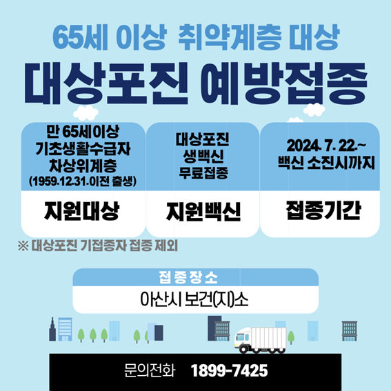 ¾Æ»ê½Ã, 65¼¼ ÀÌ»ó Ãë¾à°èÃþ ´ë»óÆ÷Áø ¹«·á ¿¹¹æÁ¢Á¾ ½Ç½Ã