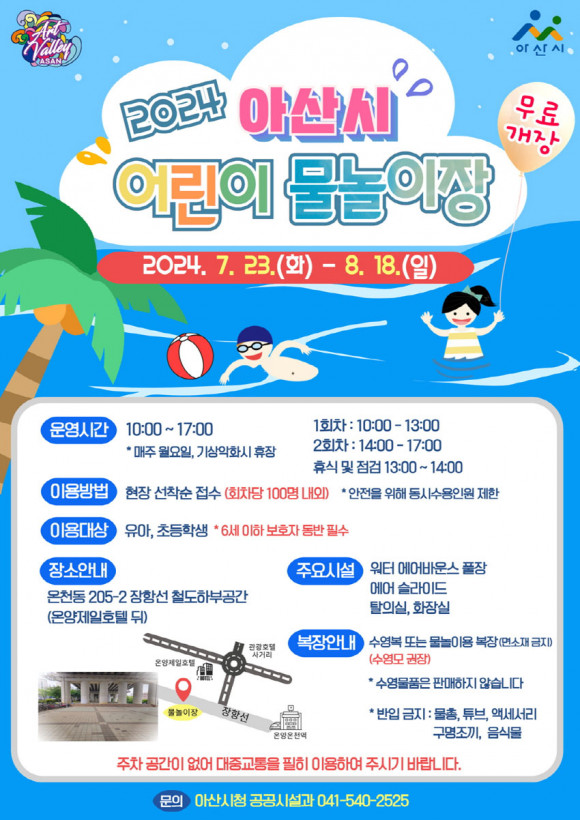 ¾Æ»ê½Ã(½ÃÀå ¹Ú°æ±Í)°¡ ¿À´Â 7¿ù 23ÀϺÎÅÍ ´ÙÀ½´Þ 18ÀϱîÁö ¿Âõµ¿ 205-2 ÀåÇ×¼± öµµÇϺΰø°£(¿Â¾çÁ¦ÀÏÈ£ÅÚ µÚ)¿¡ ¾î¸°ÀÌ ¹°³îÀÌÀåÀ» ¿î¿µÇÑ´Ù.