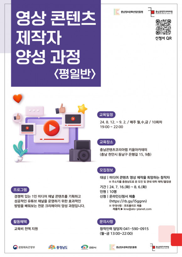 º» °úÁ¤Àº Å©°Ô ¼ºÀåÇÏ´Â ÄÜÅÙÃ÷ »ê¾÷ Áß ÇϳªÀÎ ¿µ»ó ÄÜÅÙÃ÷¿¡ µµÀüÇϴ âÀÛÀÚµéÀ» À§ÇØ ÁغñµÈ °úÁ¤À¸·Î µµ³» ¿µ»ó ÄÜÅÙÃ÷ âÀÛÀÚ ¾ç¼º ¹× ¿ª·® °³¹ßÀ» À§ÇØ ¸¶·ÃµÇ¾ú´Ù. ¿µ»ó ÃÔ¿µ ¹× ÆíÁý ¹æ¹ý°ú À¯Æ©ºê ä³Î ¿î¿µ±îÁöÀÇ °úÁ¤À» ½Ç½ÀÇÒ ¿¹Á¤ÀÌ´Ù.