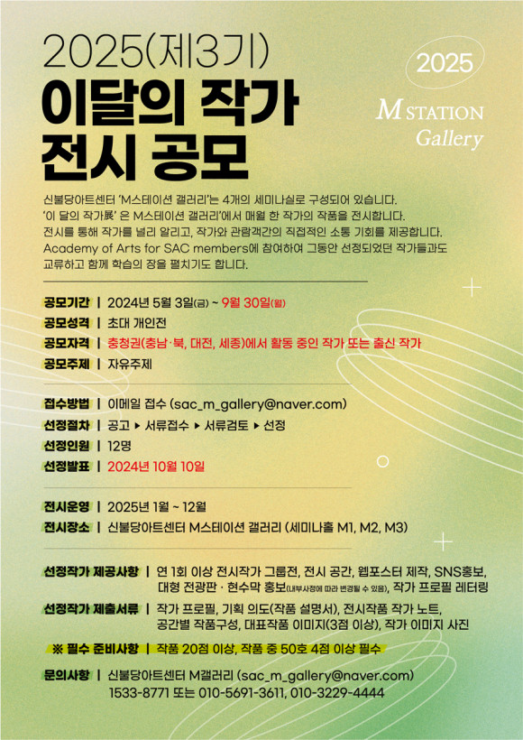 ¡®Ãæ³²¹®È¿¹¼úÇ÷§Æû¡¯ ½ÅºÒ´ç¾ÆÆ®¼¾ÅÍ(´ëÇ¥ Á¤¸¸¿µ)°¡ [2025(Á¦3±â) M½ºÅ×À̼ǰ¶·¯¸® ¡®ÀÌ ´ÞÀÇ ÀÛ°¡¡¯]¸¦ °ø¸ðÇÑ´Ù.