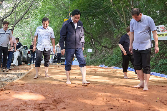 ¹Ú°æ±Í ¾Æ»ê½ÃÀåÀÌ Áö³ 8¿ù 2ÀÏ ¼Û¾Ç ±ÃÆòÀú¼öÁö ÀÓµµ ȲÅê±æ Á¶¼º ÇöÀåÀ» ¹æ¹®Çß´Ù. À̳¯ ¹Ú°æ±Í ½ÃÀå°ú °ü°è °ø¹«¿øµéÀº °¢±â ´Ù¸¥ ȲÅä¿Í ¸¶»çÅä ºñÀ²·Î Á¶¼ºµÈ ½Ã¹ü±¸°£À» üÇèÇϰí ÄèÀûÇÏ°í ¾ÈÀüÇÑ ¸Ç¹ß°È±â¸¦ À§ÇÑ ÃÖÀûÀÇ ºñÀ²°ú ÆíÀǽü³ ¼³Ä¡ µî¿¡ ´ëÇÑ ³íÀǸ¦ ÁøÇàÇß´Ù.