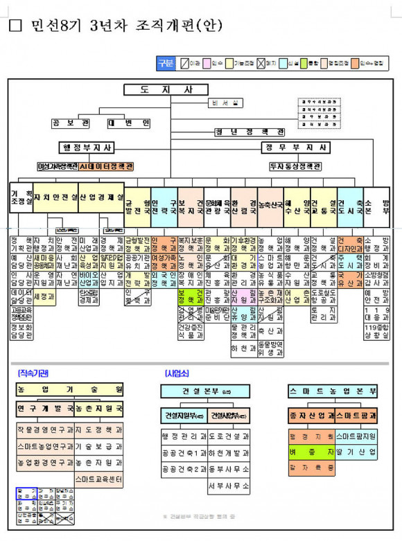 Á¶Á÷°³Æí¾È¿¡ µû¸£¸é, µµ º»Ã» ±â±¸´Â 13°³ ½Ç±¹(2±âȹ°ü Æ÷ÇÔ) 66°³ °ú¿¡¼ 15°³ ½Ç±¹(¡¨) 69°³ °ú·Î 2°³ ±¹ 3°³ °ú¸¦ È®´ë¡¤½Å¼³Çϰí, °Ç¼³º»ºÎÀå Á÷±ÞÀ» 3±ÞÀ¸·Î °Ý»óÇÒ ¿¹Á¤ÀÌ´Ù.