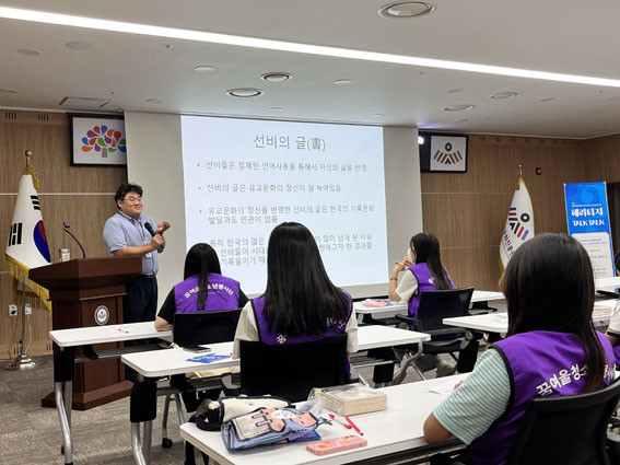 À̹ø ¡®¿ì¸®µ¿³× ¿µ¿õ, ²Þ²Ù´Â û¼Ò³â ÀÚ¿øºÀ»ç!¡¯ ÇÁ·Î±×·¥Àº ¾Æ»ê½ÃÀÚ¿øºÀ»ç¼¾ÅÍ Ã»¼Ò³â ÀÚ¿øºÀ»çÀÚ 30¸íÀÌ Âü¿©ÇßÀ¸¸ç, ¿©¸§¹æÇÐÀ» Ȱ¿ëÇÏ¿© Çѱ¹À¯±³¹®ÈÁøÈï¿ø¿¡¼ ¡®¼±ºñÀÇ ßæ(»ý)¡¯, ¡®¼±ºñÀÇ ûÜ(È£), ¡¯¼±ºñÀÇ Òþ(Â÷)¡¯¸¦ ÁÖÁ¦·Î û¼Ò³â ÀÚ¿øºÀ»çÀڷμ °®Ãç¾ßÇÒ Àμº°ú ŵµ¸¦ ÇÔ¾çÇÒ ¼ö ÀÖ´Â ½Ã°£À» °¡Á³À¸¸ç, ÀÚ¿øºÀ»çÀÚ Á¤Ã¼¼ºÀ» ã±â À§ÇÑ ¹Ì¼Ç Ȱµ¿°ú Åä·Ð, ´ÙµµÃ¼Çè µîÀ» ÅëÇØ ÇÑÃþ ¼º¼÷ÇÑ Ã»¼Ò³âÀ¸·Î ¹ßÀüÇÒ ¼ö ÀÖ´Â °è±â°¡ µÆ´Ù.