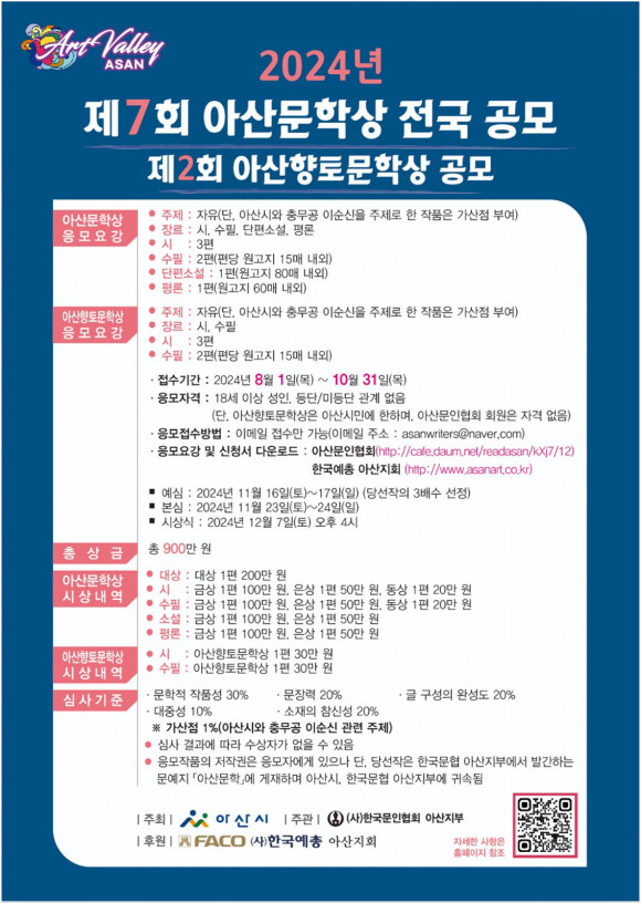 ÀÀ¸ðÀÛ Á¢¼ö´Â À̸ÞÀÏ(À̸ÞÀÏ asanwriters@naver.com)¸¸ °¡´ÉÇϸç ÀÀ¸ð¿ä° ¹× ½Åû¼´Â ¾Æ»ê¹®ÀÎÇùȸ Ä«Æä(htip://cale.daum.net/readasan/kX7/12)¿Í Çѱ¹¿¹ÃÑ ¾Æ»êÁöȸ (http://www.asanart.co.kr) ȨÆäÀÌÁö¿¡»ç ´Ù¿î·Îµå ¹ÞÀ» ¼ö ÀÖ´Ù.