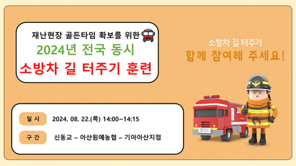 ¾Æ»ê¼Ò¹æ¼(¼Àå ±è¿À½Ä)°¡ 2024³â À»Áö¿¬½À¡¤¹Î¹æÀ§ÀÇ ³¯°ú ¿¬°èÇØ ¡®Àü±¹ µ¿½Ã ¼Ò¹æÂ÷ ±æ ÅÍÁֱ⡯ ÈÆ·ÃÀ» ½Ç½ÃÇÑ´Ù.