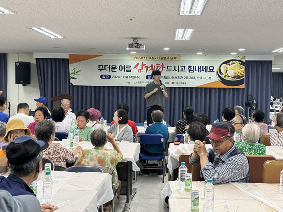 | | ¡è¡è ¡ã±Â³×À̹ö½º ¿ÂÁÖÁ¾ÇÕ»çȸº¹Áö°ü(°üÀå äÁ¾º´)Àº 2024³â ¸»º¹À» ¸ÂÀÌÇØ Áö¿ªÁֹΠ200¸íÀ» ´ë»óÀ¸·Î ¿ÂÁÖÀý±â³ª´®Çà»ç ¡®¸»º¹¡¯À» ÁøÇàÇß´Ù. »çÁøÀº Çà»ç ÁøÇà ¸ð½À. <»çÁøÁ¦°ø=±Â³×À̹ö½º ¿ÂÁÖÁ¾ÇÕ»çȸº¹Áö°ü> | ¨Ï (ÁÖ)¿Â¾ç½Å¹®»ç | | Çà»ç Âü¿© Áö¿ªÁÖ¹ÎÀº ¡°´õ¿î ³¯¾¾ ¶§¹®¿¡ Èûµé¾ú´Âµ¥ Çà»ç¸¦ ÅëÇØ ¸ÀÀÖ´Â »ï°èÅÁÀ» µçµçÇÏ°Ô ¸Ô°í ³²Àº ¿©¸§ Àß º¸³¾ ¼ö ÀÖÀ» °Í °°´Ù¡±¶ó¸ç, °¨»çÀÇ Àλ縦 ÀüÇß´Ù.