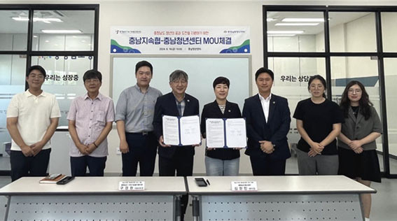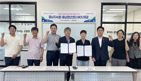 Ãæ³²Ã»³â¼¾ÅÍ¿¡¼ ÁøÇàµÈ Çù¾à½Ä¿¡´Â Ãæ³²µµÀÇȸ û³âÁ¤Ã¥ Ưº°À§¿øÈ¸ À§¿øÀå Áö¹Î±Ô À§¿ø°ú Ãæ³²Áö¼ÓÇù ¹Ì·¡¼¼´ëºÐ°úÀ§¿øÈ¸ ¹è¼ºÈÆ À§¿øÀåµµ ÇÔ²² Çß´Ù. Çù¾à½ÄÀÇ ÁÖ¿ä³»¿ëÀº ¡ãû³âÀÇ »î Àü¹Ý¿¡ ´ëÇÑ Áö¼Ó°¡´ÉÇÑ »ç¾÷ ¹ß±¼ ¡ãû³âµéÀÌ ÁÖµµÇÏ´Â Á¤Ã¥À» °³¹ßÇÏ¿© µµÁ¤°ú ±¹Á¤¿¡ ¹Ý¿µµÉ ¼ö ÀÖµµ·Ï »óÈ£ ³ë·Â ¡ã»óÈ£ Á¤º¸±³·ù ¹× ´ë¿Ü È«º¸ µî ¿ìÈ£ ÁõÁøÀ» À§ÇÑ Çù·Âü°è À¯Áö µîÀÌ´Ù.