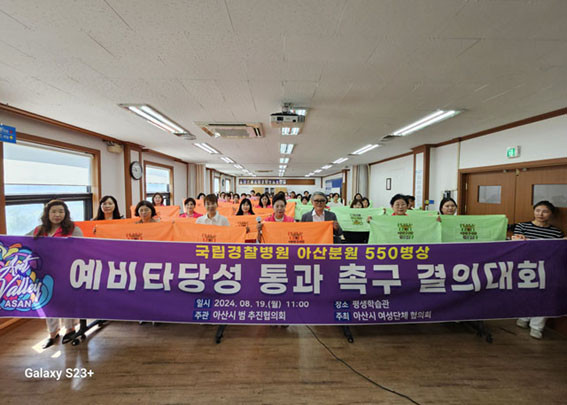 À̳¯ ¾Æ»ê½Ã¿©¼º´ÜüÇùÀÇȸ(ȸÀå À庹¿¬)°¡ ù ÁÖÀÚ·Î ¾Æ»ê½Ã Æò»ýÇнÀ°ü¿¡¼ ¿©¼º´ÜüÇùÀÇȸ ÀÓ¿ø µî 60¿©¸íÀÌ Âü¼®ÇÑ °¡¿îµ¥ ¡®¾Æ»ê °æÂûº´¿ø 550º´»ó ¿¹ºñŸ´ç¼º Åë°ú¡¯¸¦ Ã˱¸ÇÏ´Â °áÀÇ´ëȸ¸¦ °¡Á³´Ù.
