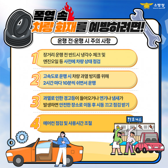 ÁÖµ¿ÀÏ ¿¹¹æ¾ÈÀü°úÀåÀº ¡°¹«´õÀ§°¡ Áö¼ÓµÇ´Â ³¯¾¾¿¡ Â÷·®ÈÀç À§Ç輺ÀÌ ³ô´Ù.¡±¸ç ¡°¿©¸§Ã¶ Â÷·®ÈÀç ¿¹¹æÀ» À§ÇØ Ã¶ÀúÇÑ ¾ÈÀü¼öÁ÷ Áؼö¿Í Â÷·®¿ë ¼Òȱ⸦ Çʼö·Î ºñÄ¡ÇÏ±æ ¹Ù¶õ´Ù.¡±°í ÀüÇß´Ù.