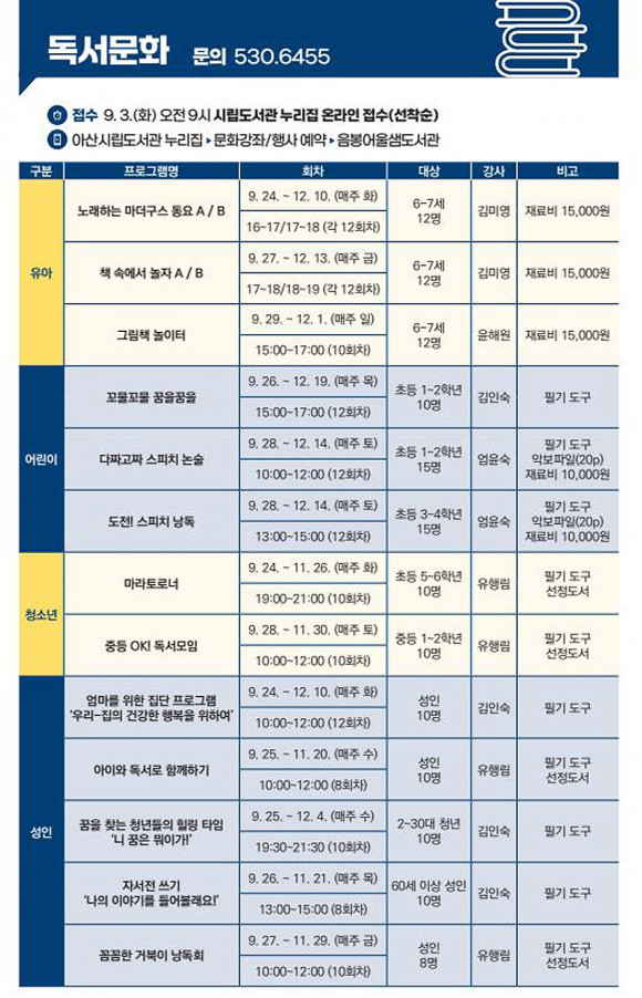 ¶ÇÇÑ µ¶¼ÇÁ·Î±×·¥À¸·Î ¡ã³ë·¡ÇÏ´Â ¸¶´õ±¸½º µ¿¿ä A/B ¡ã±×¸²Ã¥ ³îÀÌÅÍ ¡ã¸¶¶óÅä·Î³Ê ¡ã²ÞÀ» ã´Â û³âµéÀÇ Èú¸µ ŸÀÓ ¡ã¾ÆÀÌ¿Í µ¶¼·Î ÇູÇϱ⠡㠳ªÀÇ À̾߱⸦ µé¾îº¼·¡¿ä(ÀÚ¼Àü ¾²±â) µî 15°³ÀÇ »ý¾ÖÁֱ⺰ µ¶¼ÇÁ·Î±×·¥ÀÌ 9¿ù 24ÀÏ ½Ã¹ü¿î¿µÀÏ Ã¹³¯ºÎÅÍ ´Ùä·Ó°Ô ¿î¿µµÉ ¿¹Á¤ÀÌ´Ù.
