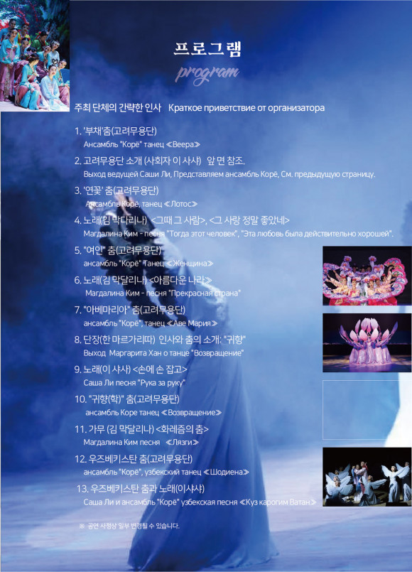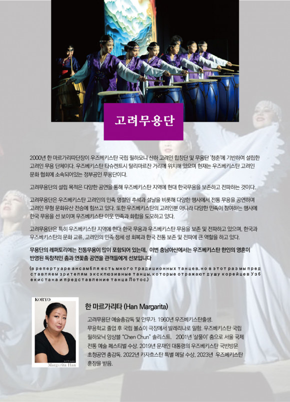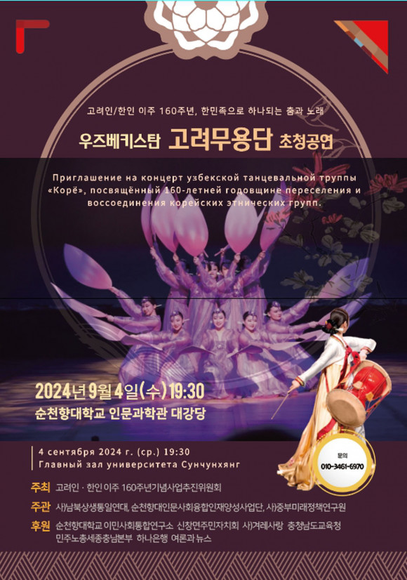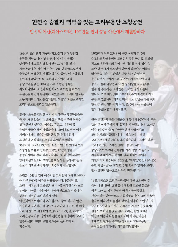2024³â ÇÑÀÎÀÌÁÖ 160ÁÖ³âÀ» ±â³äÇÏ¿© Ưº°ÃÊûµÈ °í·Á¹«¿ë´ÜÀº Ãæ³² ¾Æ»ê, ¼¿ï ³ë¿ø, ±¤ÁÖ, ´ë±¸ °ø¿¬À» ÅëÇÏ¿© Çѱ¹°ú CIS±¹°¡¿¡ Èð¾îÁ® »ì°íÀÖ´Â 50¸¸ °í·ÁÀεé°úÀÇ Ä£¼±À» µµ¸ðÇϰíÀÚ ÇÑ´Ù.